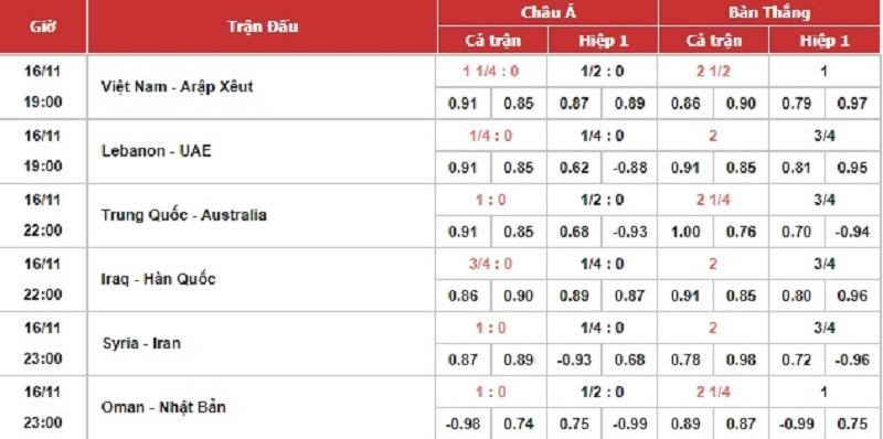 Các lưu ý quan trọng khi đọc bảng kèo